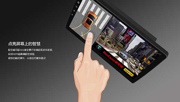 觸控——產(chǎn)品采用了10.1寸超大IPS屏幕以及G+G觸摸屏,可實(shí)現(xiàn)觸控操作;在觸控指令下,在行車過程中可根據(jù)車主自主需求,直接通過觸摸屏幕切換視角畫面, 無需再通過打轉(zhuǎn)向燈或是掛倒擋等來被動(dòng)切換視角畫面,除此之外,還可實(shí)現(xiàn)設(shè)置、記錄回放等眾多便捷操控,更智能、更便捷!