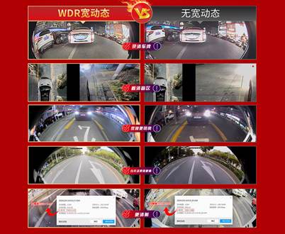同時(shí),WDR寬動(dòng)態(tài)能夠很好抑制強(qiáng)光的反射和干擾,無(wú)論是在白天的太陽(yáng)逆光,還是隧道口的逆光,以及夜間的強(qiáng)光反射等環(huán)境下,都能夠保證360°全景拍攝出比較清晰的畫面,車牌號(hào)等細(xì)節(jié)都能一覽無(wú)遺。